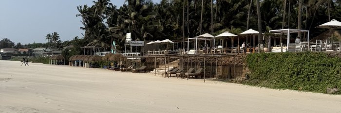 Am nächsten Tag fahren wir ein Stück weiter Richtung Norden und versöhnen uns mit Goa. Denn hier in Morjim am wunderbaren Ashwem Beach erwarten uns ein endloser Strand, Palmen und gepflegte Beachlokale mit bequemen Liegen, Strandduschen und sauberen Toiletten. Wie überall gilt eine kleine Mindestkonsumation im Lokal, dafür werden die Liegen kostenfrei zur Verfügung gestellt.