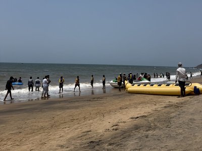 Ansonsten ist am berühmten Anjuna Beach jedoch nicht mehr viel vom entspannten Hippie-Flair zu spüren. Unzählige indische Touristen bevölkern den Strand und stellen sich an, um Bananaboat oder Jetski zu fahren. Von einer Benzinkrise ist hier nichts zu merken, die motorisierten Wassersportattraktionen sind im Dauerbetrieb und entsprechend laut.