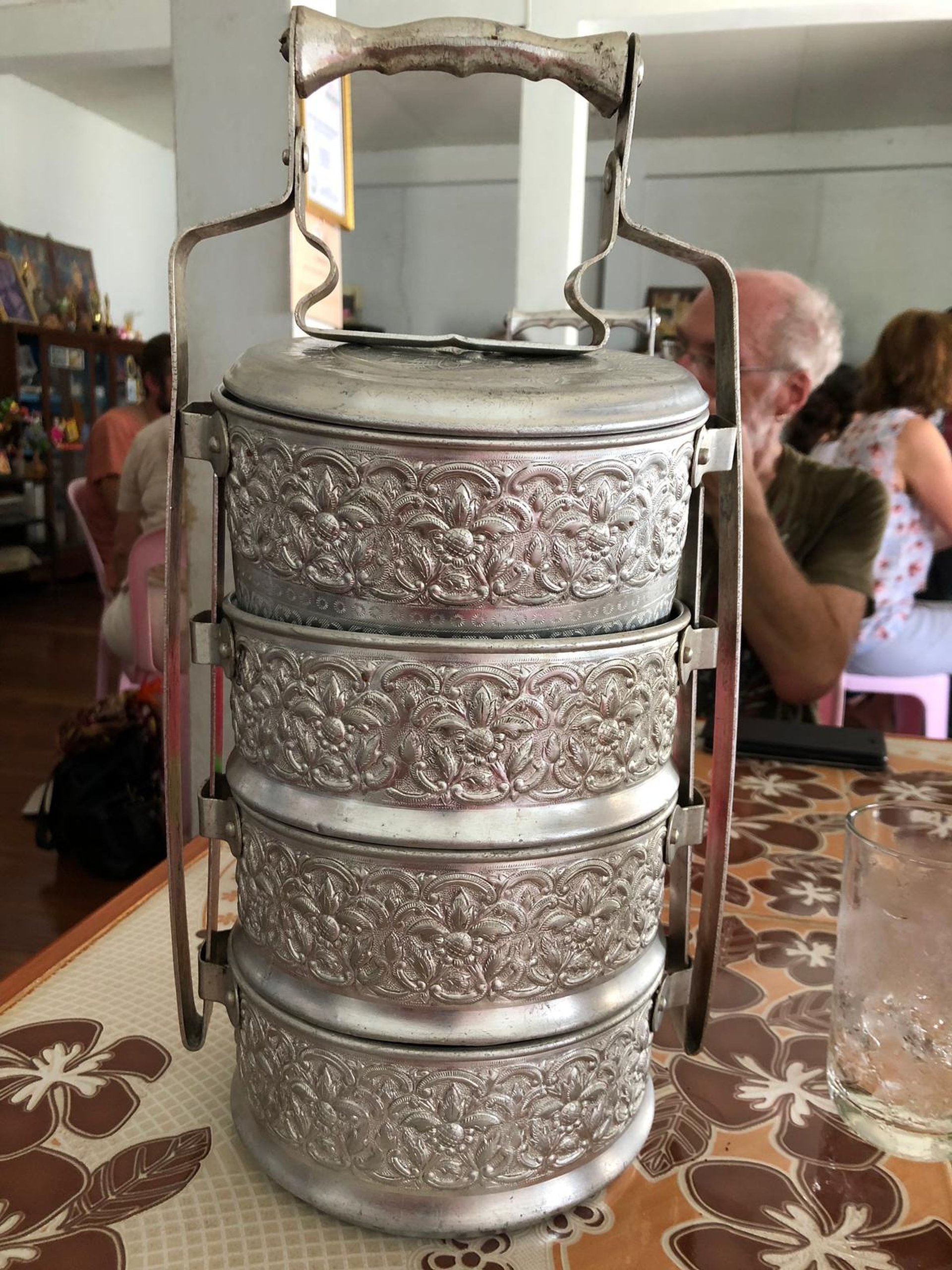 Alle Gänge sind in einzelnen Boxen aufeinander gestapelt, die es in verschiedensten Varianten gibt. Die Ausführungen reichen dabei von wunderschön kunstvoll verziert aus Metall bis quietschbunt und modern aus Plastik. Auf jeden Fall schmeckt es toll!