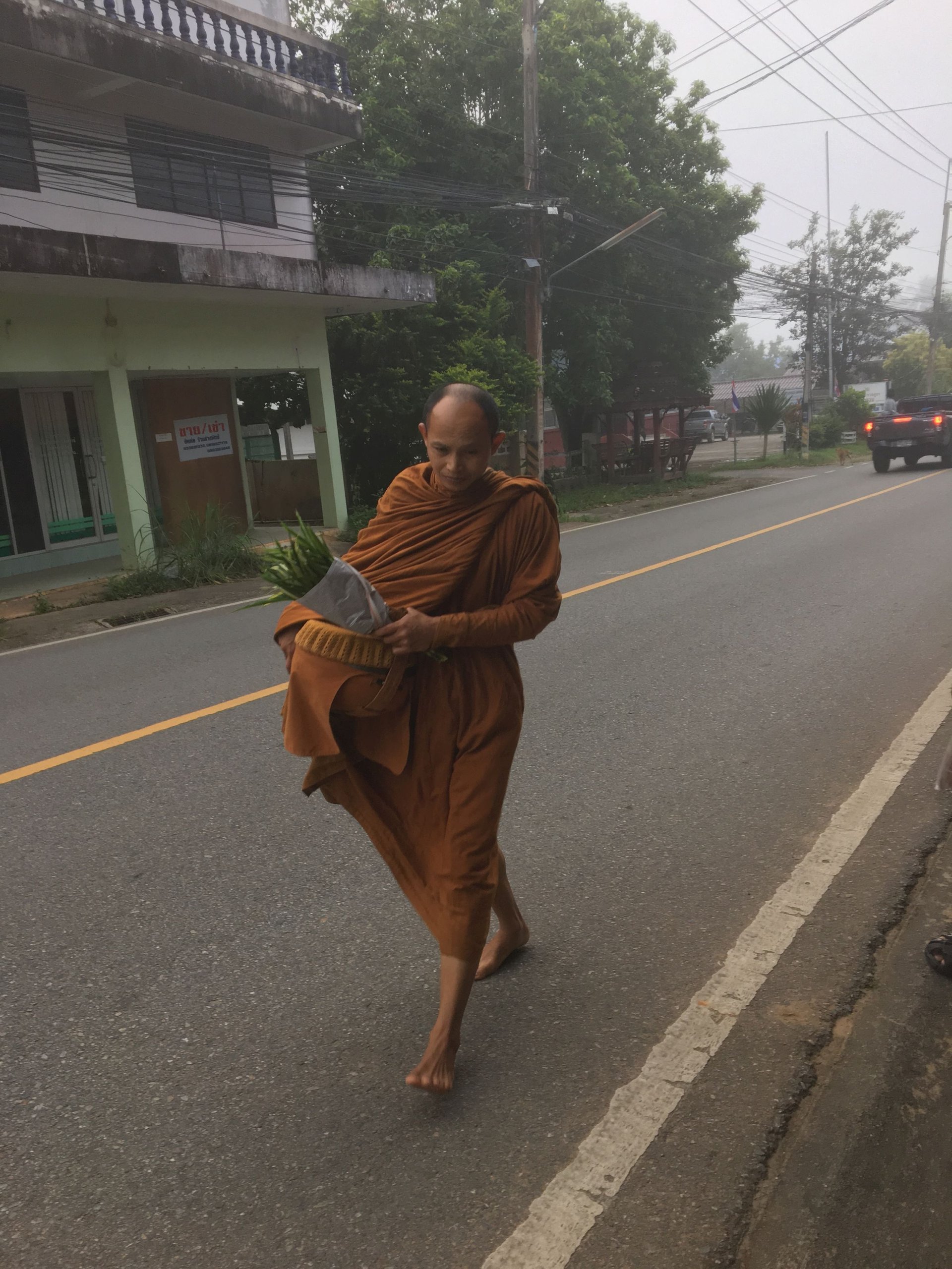 Heute starten wir schon im Morgengrauen um rechtzeitig mit den Einheimischen am Markt zu sein. Mitten im Geschehen nehmen wir an der täglichen Essensverteilung an die buddhistischen Mönche teil, machen eine kleine Kaffeepause an einem Getränkestand und kehren dann zum Frühstück in unser Guesthouse zurück.