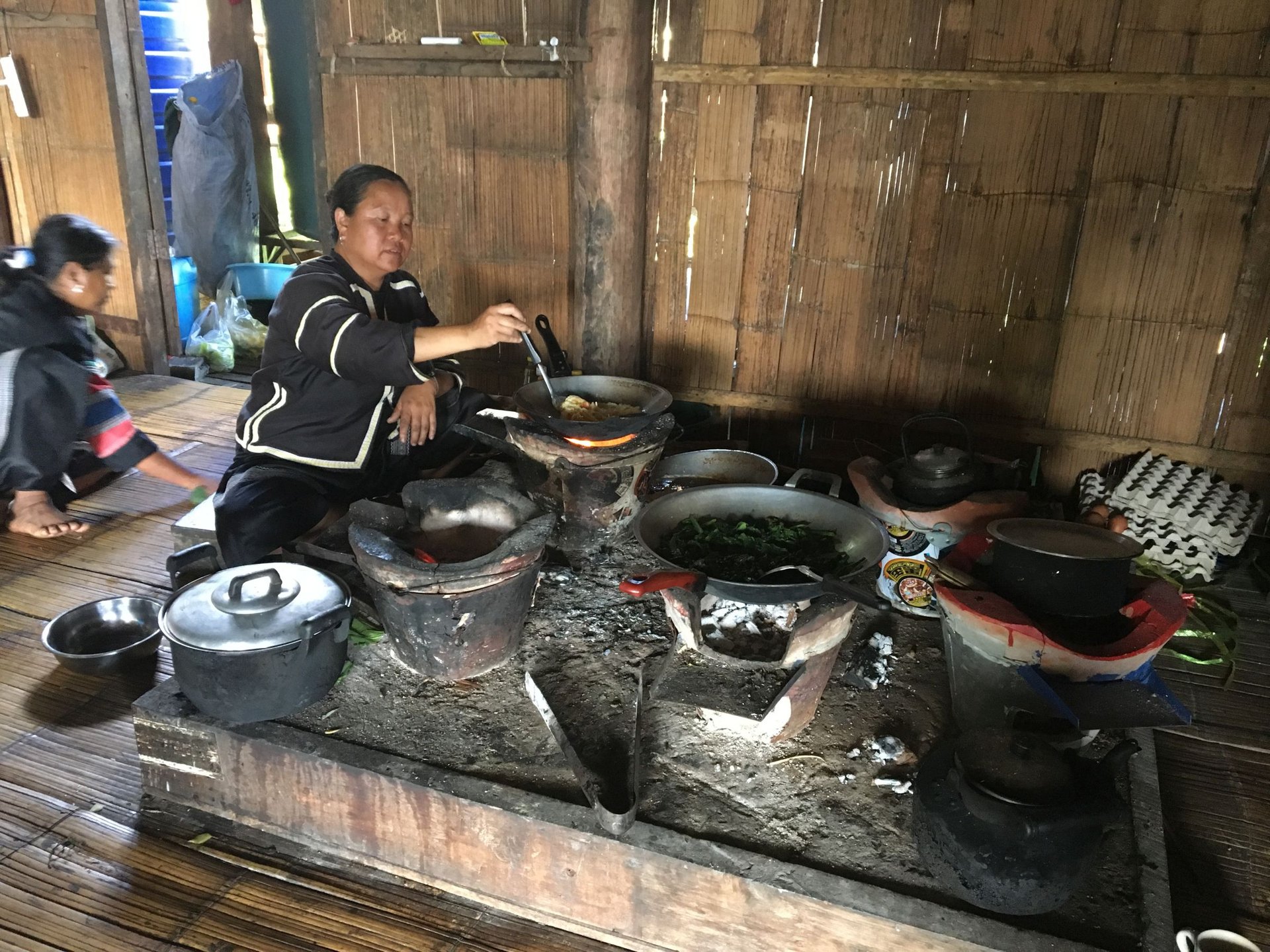 Zu Mittag nehmen wir ein typisches Essen im Dorf ein, das auf offenem Feuer in zahlreichen Töpfen zubereitet wird. Wie schon die letzten Tage auchein einfaches, aber köstliches Mahl!
