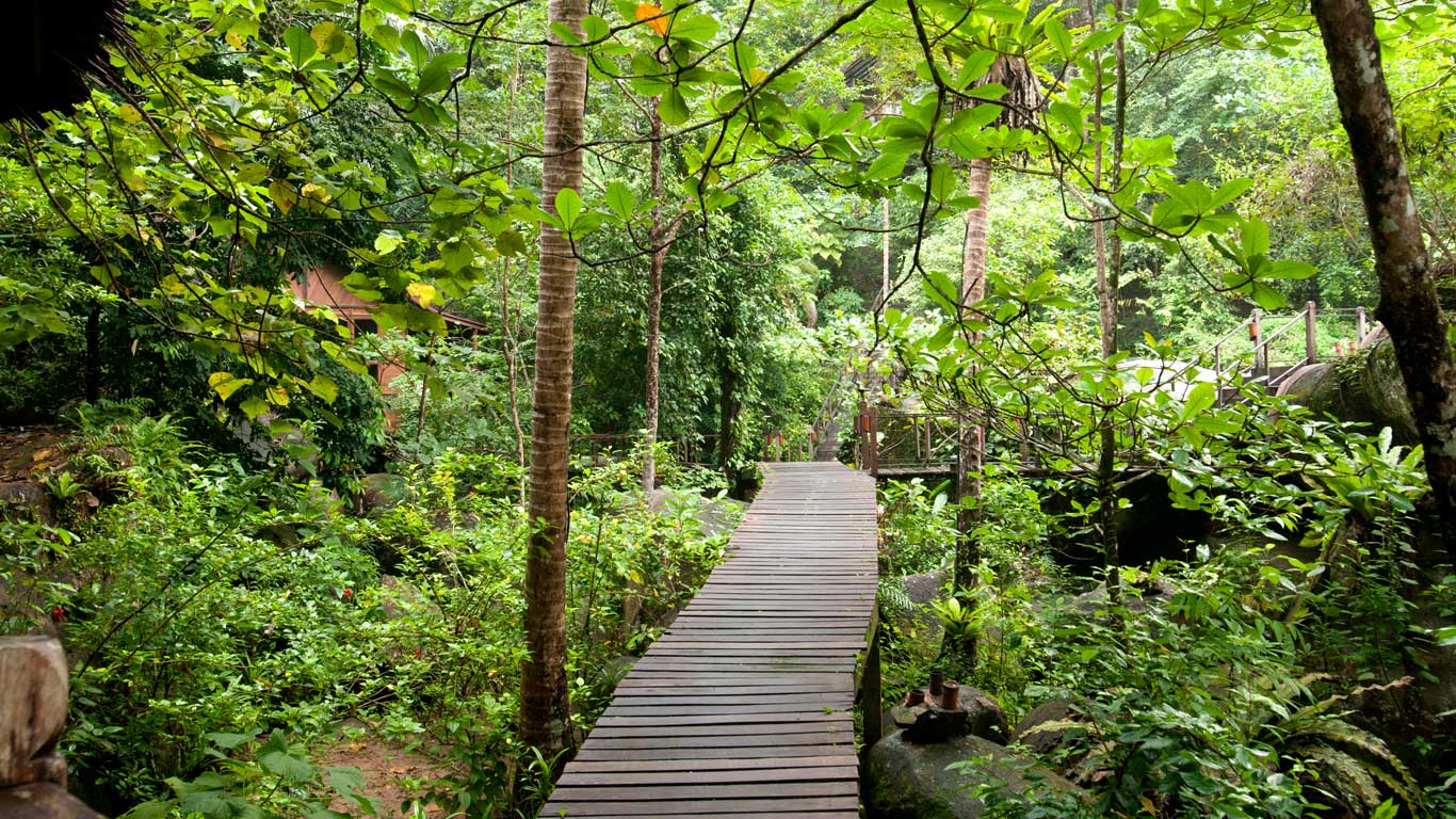 Das Japamala Resort orientiert sich an den natürlichen Gegebenheiten. Natürliche Bäche, steile Klippen, hoch aufragende Felsblöcke und die Bäume gaben vor, wo eine Villa gebaut werden konnte. Für deren Errichtung wurden keine Bäume gefällt und Sie verbringen Ihren Aufenthalt in einer speziellen Atmosphäre der Verbundenheit mit der Natur.