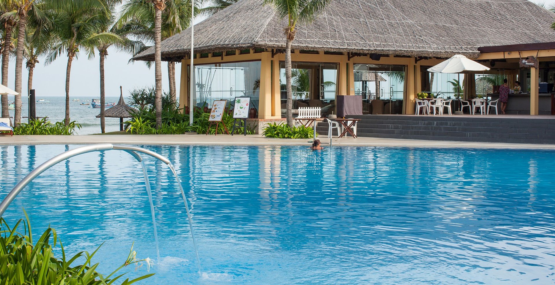 Hängematten in einer weitläufigen Gartenanlage und Liegen am Pool mit großartigem Meerblick. Wem das noch nicht reicht, der findet in der gepflegten Anlage allen Annehmlichkeiten eines Hotels der 4* Kategorie. Der wunderschöne Sandstrand lädt zum Entspannen ein, einige Restaurants befinden sich in der Nähe und ins Zentrum von Mui Ne gibt es dreimal täglich einen Hotelbus.