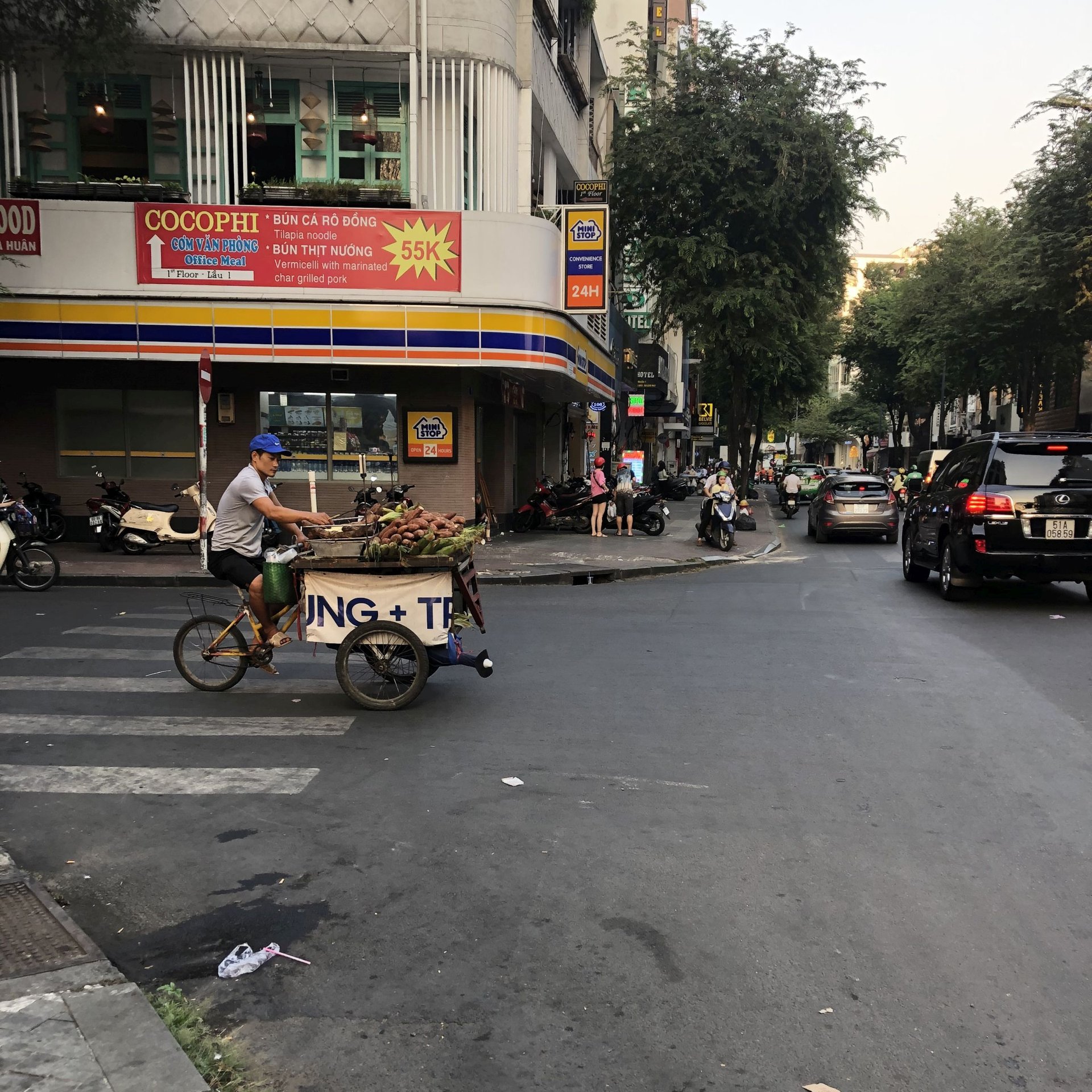 Die Fahrräder für den Warentransport und traditionellen Cyclos sind fast komplett aus dem Stadtbild verschwunden. Nur mehr vereinzelt sehen wir Händler mit Waren am dreirädrigen Cyclo. Ein großer Gegensatz zur Hauptstadt Hanoi, wo Fahrräder als Transportmittel noch allgegenwärtig sind! In Ho Chi Minh City dürfen sie nur mehr in den Seitenstraßen fahren, um den Verkehrsfluss nicht zu behindern. Mopeds sind heute aber ein ebenso faszinierender Anblick. Genauso vollgepackt mit mehr Ware und Mitfahrern, als wir es für möglich halten würden.