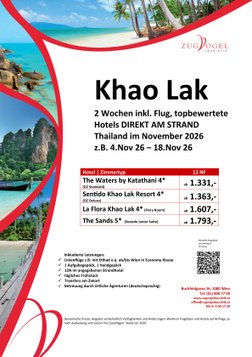 Deshalb finden Sie beim Zugvogel keine Billighotels oder Flugverbindungen mit unmöglichen Umsteigezeigen. Wir kennen was wir empfehlen und machen hier Vorschläge für einen Urlaub wo das Preis-/Leistungsverhältnis sicher passt. Kommen Sie mit Ihren Wünschen zu uns, denn wir erstellen Ihnen immer ein persönliches Angebot für Ihre Ansprüche.