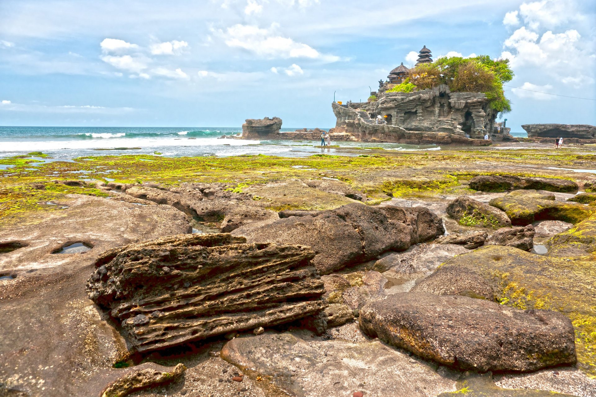 Der auf einem Felsen im Meer gelegene kleine Tempel Tanah Lot ist sicher eine der bekanntesten Sehenswürdigkeiten der Insel. Sie erleben das wichtige Heiligtum am Morgen, noch ohne Menschenmassen. Auch die Landschaft um Tanah Lot herum ist spektakulär. Es gibt Lavafelsen, an denen sich die tosenden Wellen brechen und der Ausblick auf die Vulkane von Westbali machen den Besuch zu einem wunderschönen Naturschauspiel.