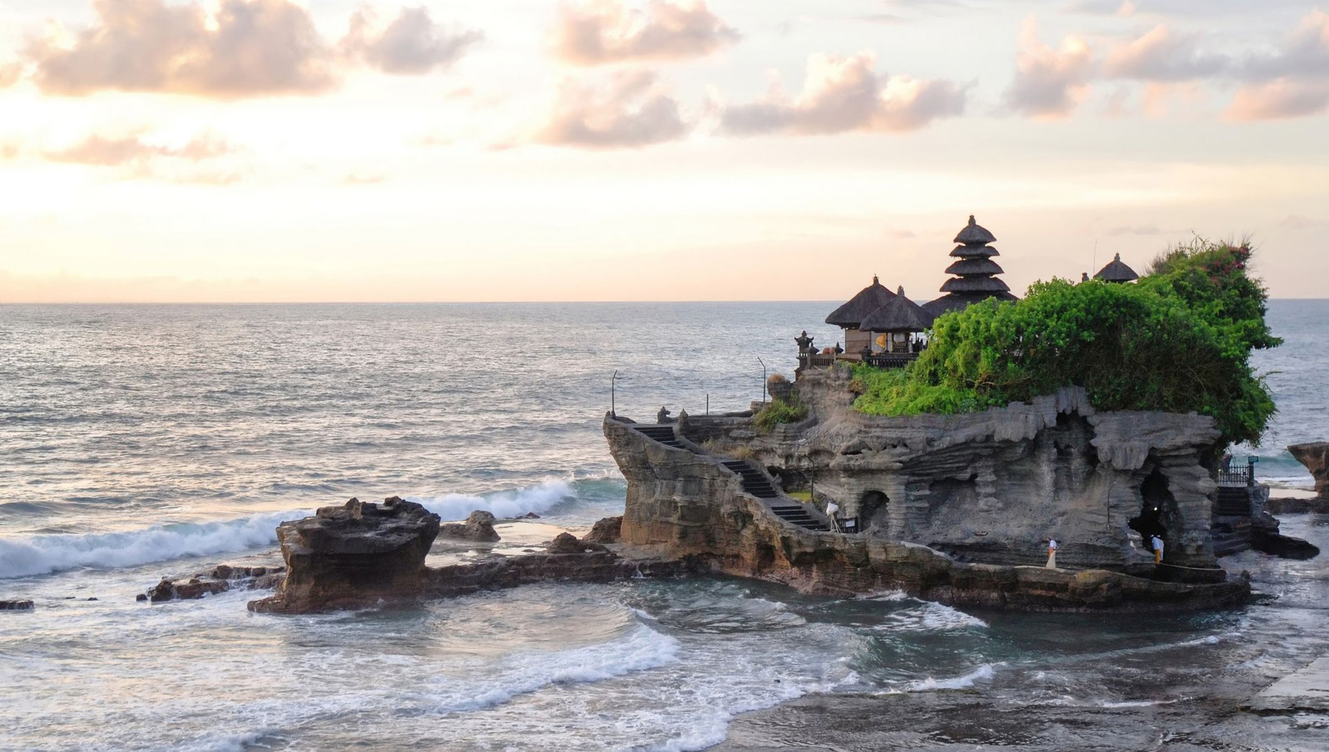 Von Südbali aus geht es zunächst zu einem der heiligsten Orte der Insel Bali. Auf einer markanten Felsformation vor der Küste befindet sich der berühmte Tanah Lot Tempel. Er ist nicht nur ein beliebtes Fotomotiv, sondern vor allem Ziel zahlreicher Pilger.