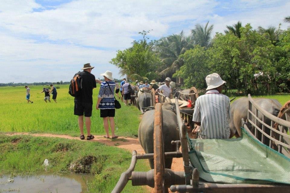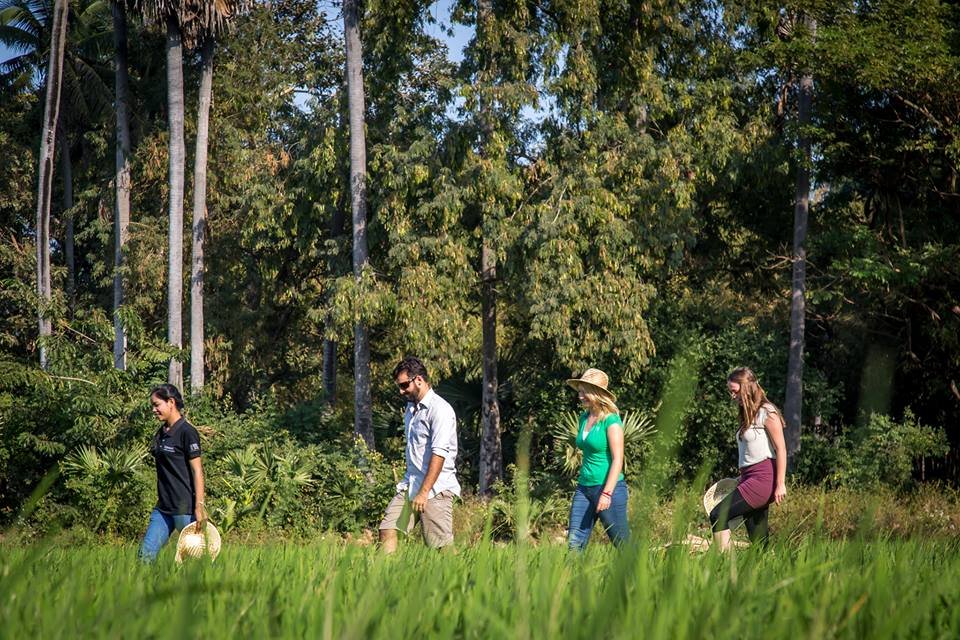Sie unternehmen einen Ausflug in das Dorf Kompheim. Mit dem Ochsenkarren geht es durch das Dorf und Sie haben die Möglichkeit diesen auch selbst zu lenken – gar nicht so einfach! Anschließend lernen Sie Ihre Gastfamilie kennen, der sie bei ihren täglichen Arbeiten helfen werden. Je nach Saison säen oder ernten Sie Reis, Gemüse, Früchte usw. Danach treffen Sie eine andere Familie mit der sie gemeinsam ein typisches Khmer Mittagessen, das aus frischen Zutaten vom Markt und aus dem Dorf besteht, einnehmen. Nach dem Essen machen Sie einen kurzen Spaziergang und können sich das Dorf näher ansehen und auch mit den Bewohnern reden. In der Gemeinschaftsschule HUSK können Sie mehr über das Flaschenbauprojekt erfahren. Am Nachmittag geht es dann zurück nach Siem Reap.