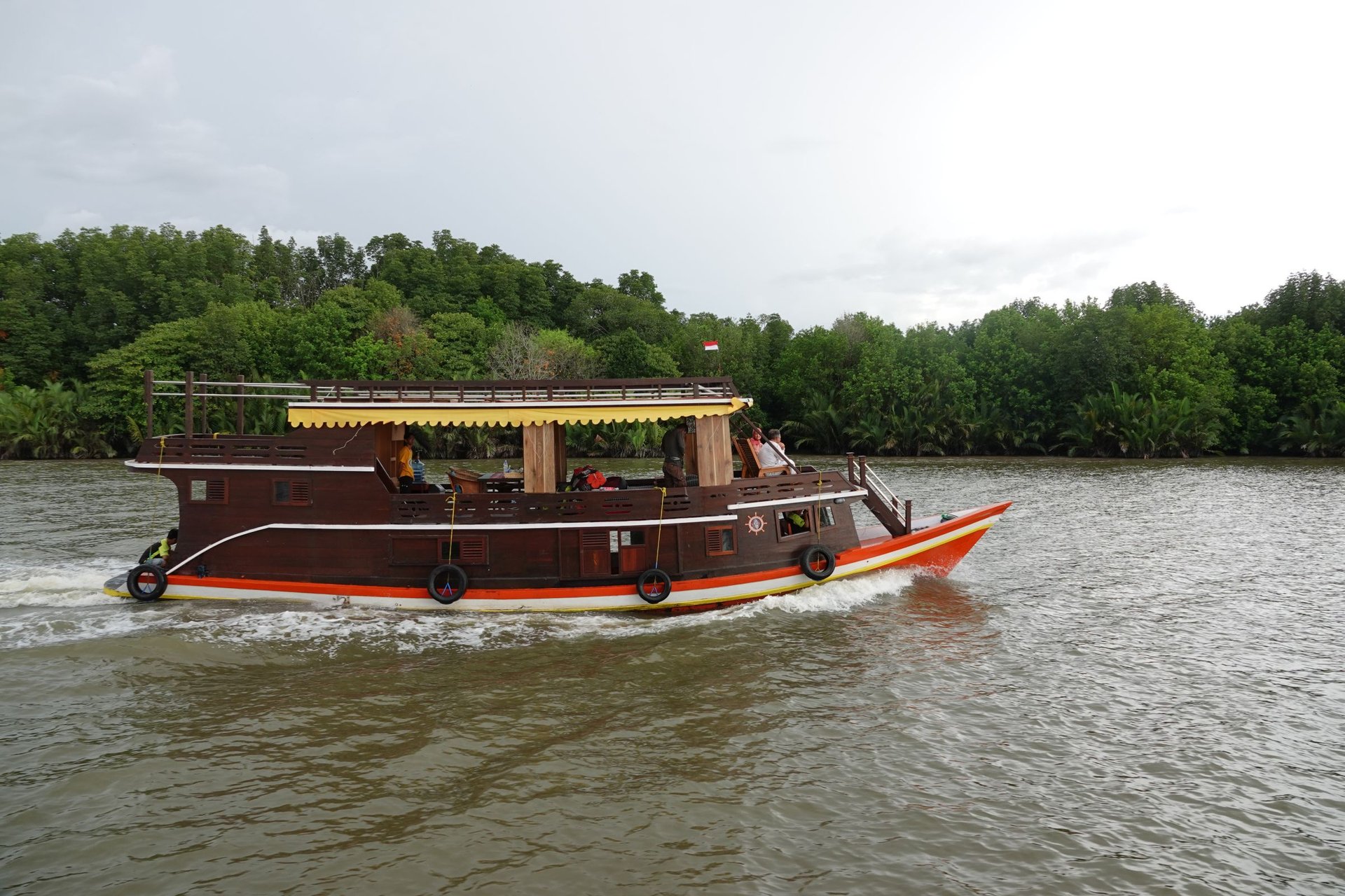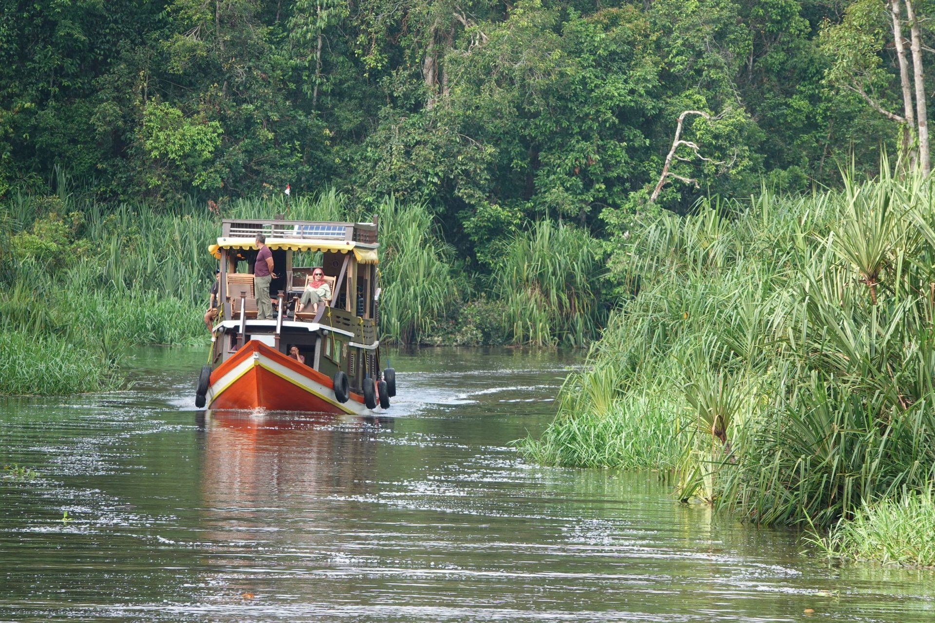 Die Crew war unglaublich herzlich und aufmerksam. Sie bestand aus einem Kapitän mit Gehilfen, einem Koch und einem englischsprachigen Guide – alle stammen aus dem kleinen Ort Kumai. Die Mahlzeiten an Bord waren köstlich, abwechslungsreich und immer frisch zubereitet. Auch Vegetarier finden hier immer eine Option!