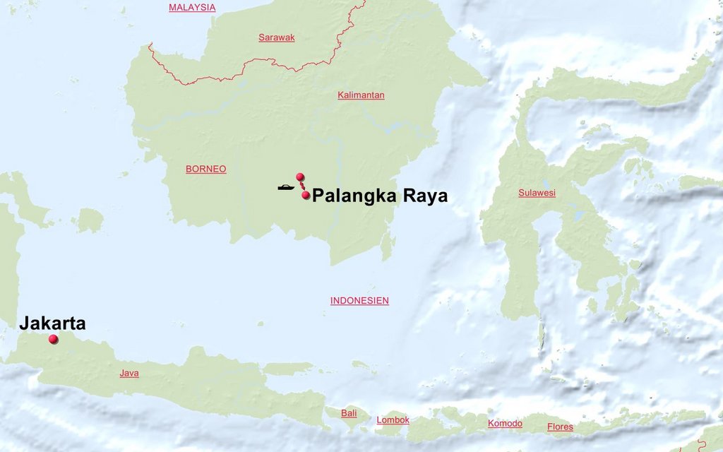 Direktflüge nach Palangka Raya mit Garuda Indonesia ab Jakarta, alternativ auch Flüge von Yogyakarta, Semarang, Surabaya möglich. Tourbeginn um ca. 08.30 Uhr, Anreise am Vortag empfohlen.