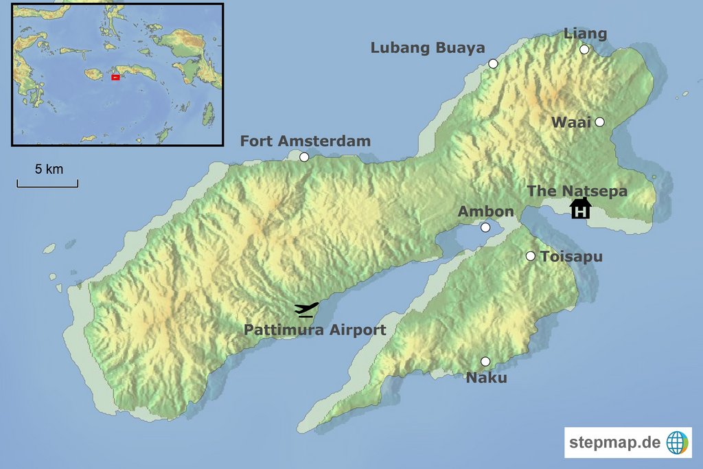 Ankunft in Ambon und Transfer zum Natsepa Resort. Das einzige 4* Hotel auf den Molukken direkt am Natsepa Beach verfügt über 96 komfortable großzügige Zimmer mit Balkon in einer wunderbaren Umgebung. Genießen Sie den Ausblick auf die Baguala Bay und die Berge der Halbinsel Leitimur.