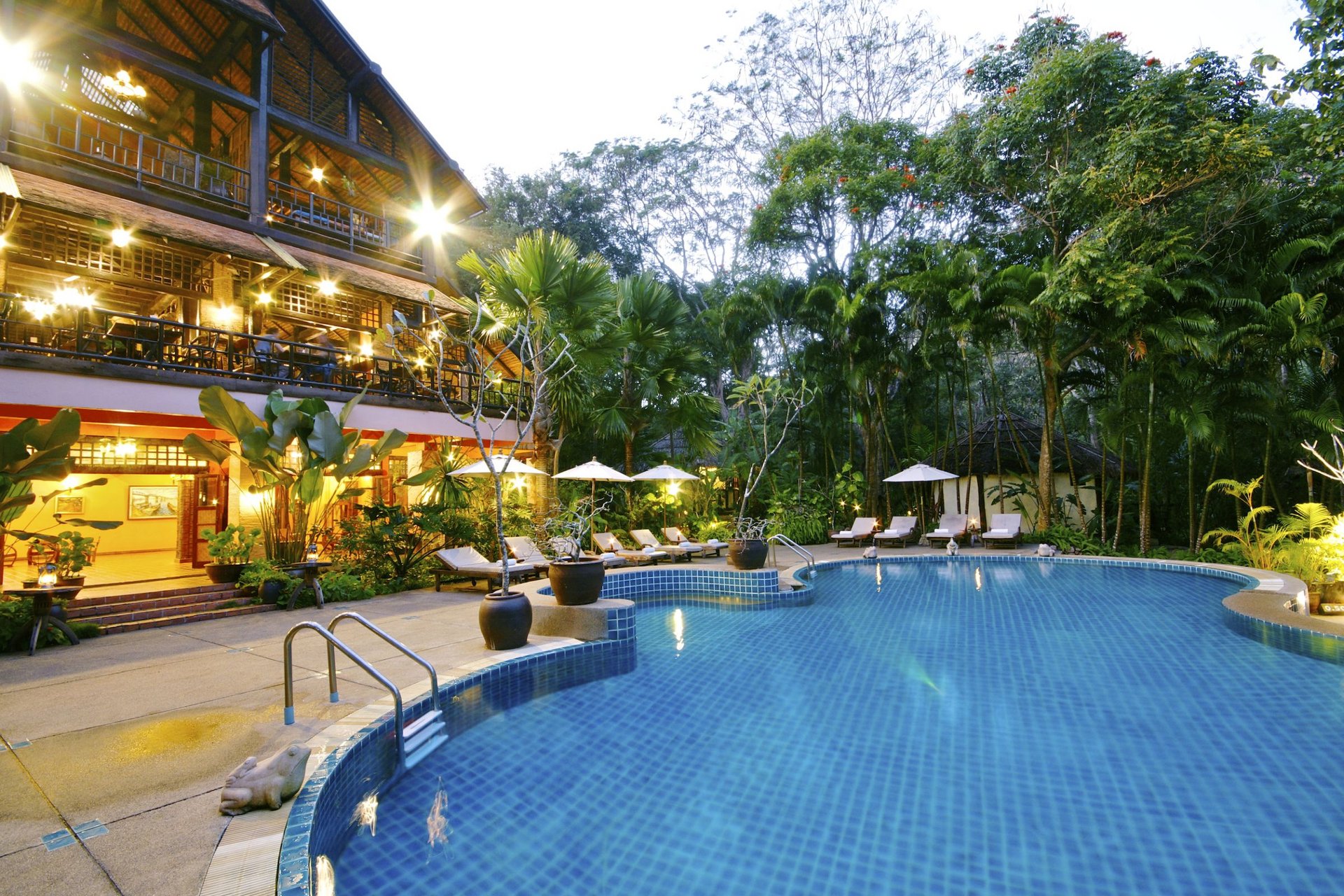 Besuch im Dorf der MonMithilfe bei der Fütterung der ElefantenFahrt mit dem Bambus-FloßÜbernachtung im River Kwai Resotel, Kanchanaburi (Standard Chalet)