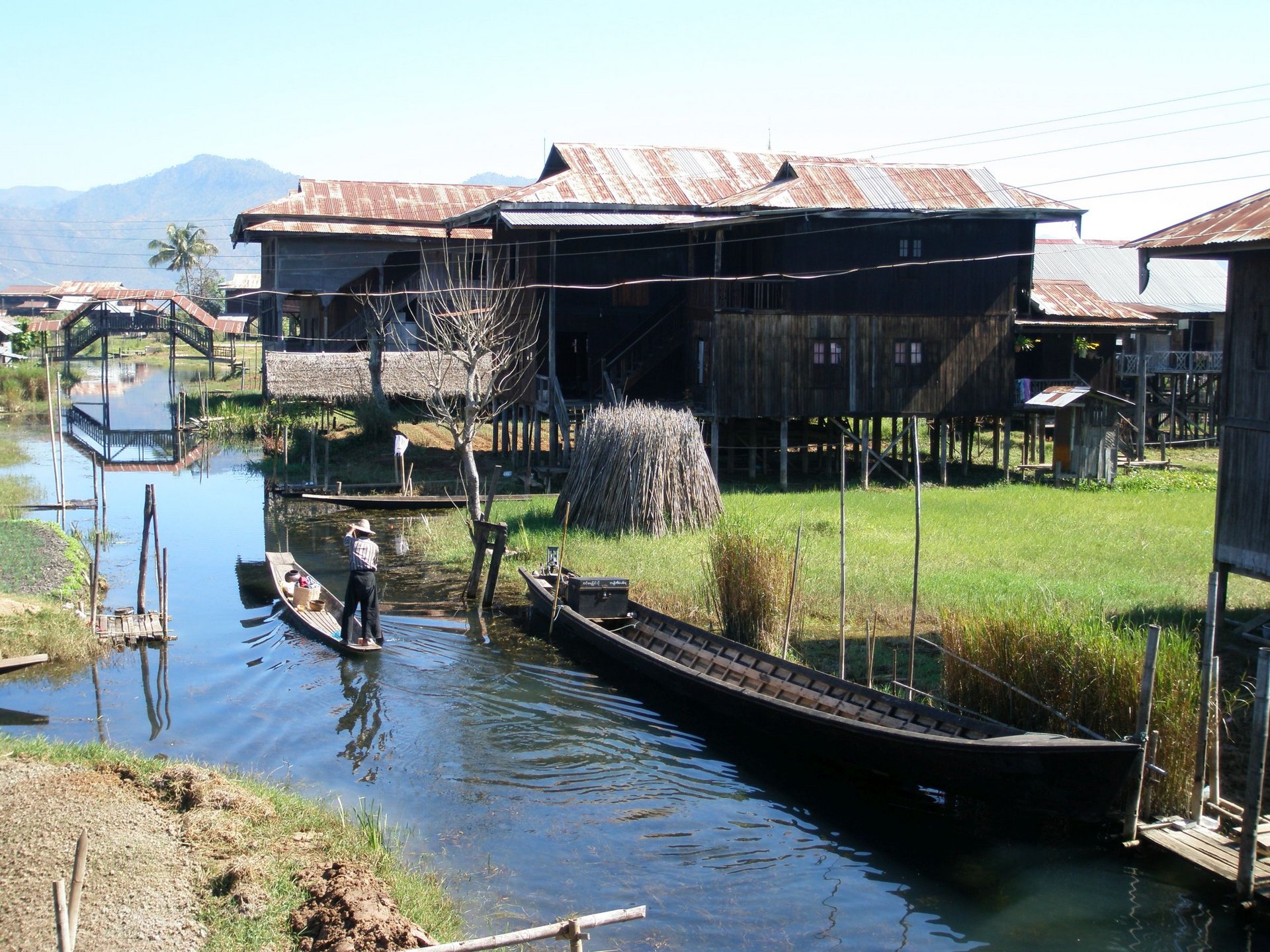 Nach dem Mittagessen starten Sie mit dem Longtailboot zu einem Ausflug über den See nach Indaing am westlichen Ende. Genießen Sie die idyllische Aussicht und besuchen Sie eines der Dörfer mit unzähligen Kanälen und kleinen Teakholzhäusern auf Stelzen. Sie fahren auf baumgesäumten Wasserstraßen und können die Bauern bei der Arbeit auf den schwimmenden Feldern beobachten. Den Hintergrund bilden dabei die Hügel der Shanregion - einzigartige Fotomotive sind Ihnen sicher!