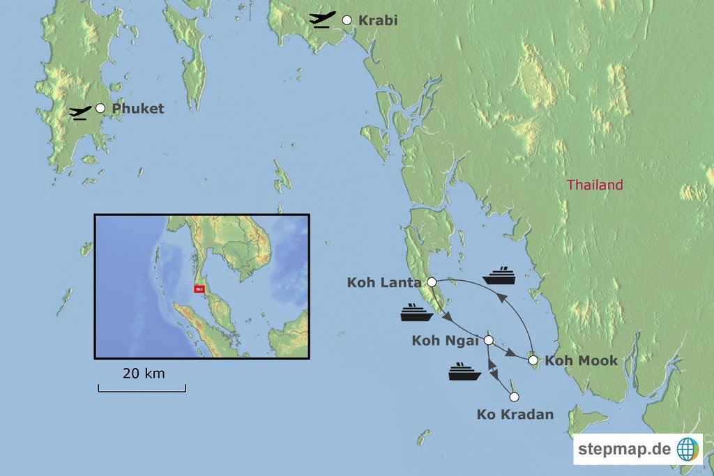 Stationen der Route: Koh Lanta Koh Ngai Koh Kradan Koh Chuek Koh Mook Koh Lanta