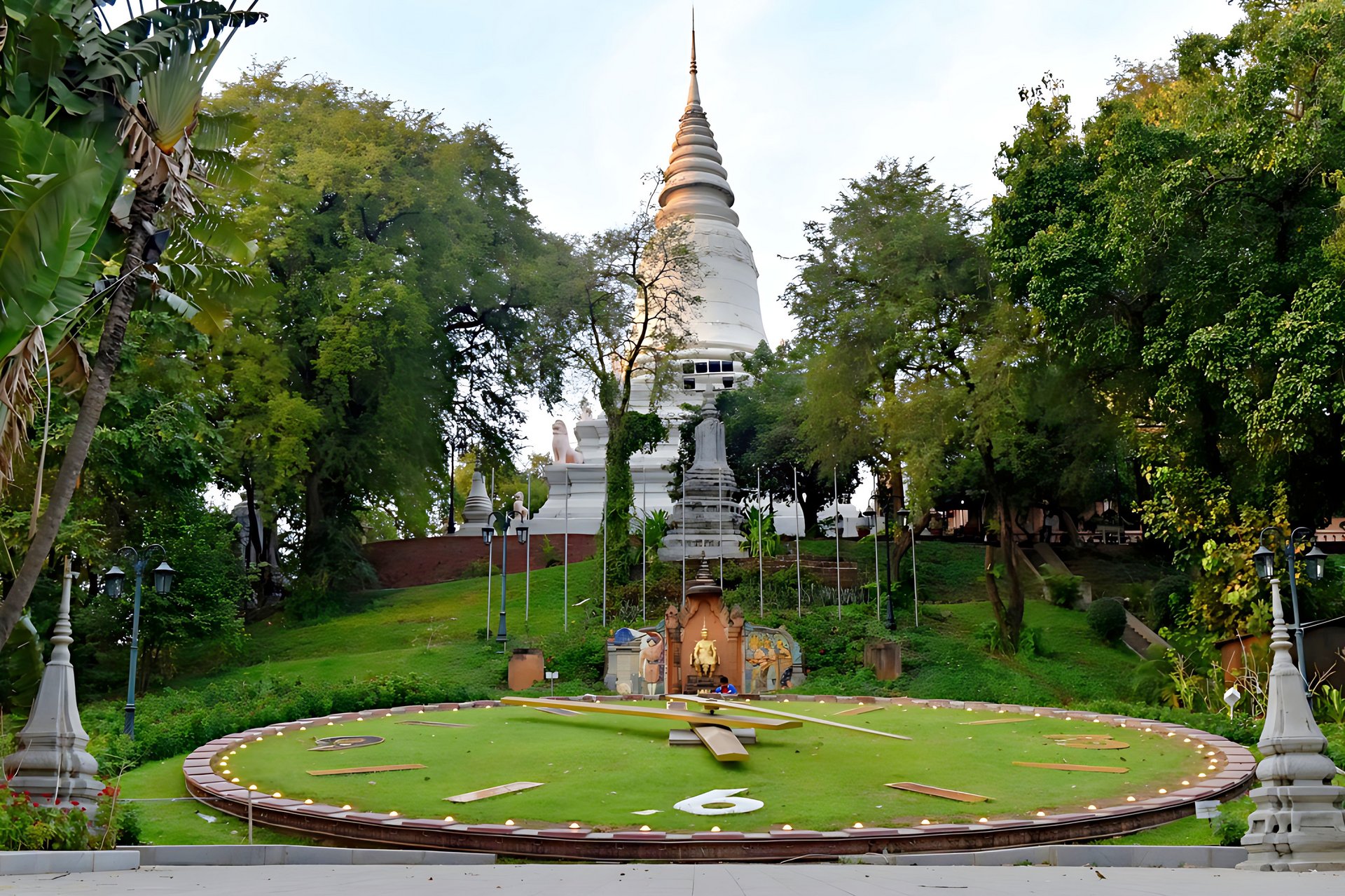 Erkunden Sie die kambodschanische Hauptstadt! Beginnen Sie am Wat Phnom, auf einer baumbewachsenen Anhöhe auf dem einzigen Hügel der Stadt liegt. Noch heute kommen viele Menschen zu diesem Tempel, um für Glück und Erfolg zu beten. Bei den Geistern als Opfergaben angeblich besonders beliebt sind vor allem Girlanden aus Jasminblüten oder Bananen.