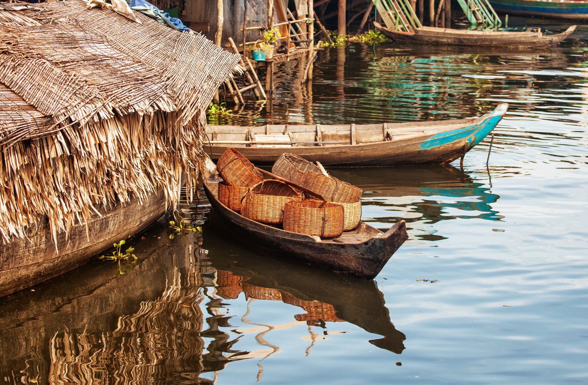 Fahrt von Ihrem Hotel zum Tonle Sap, dem größten Süßwassersee Südostasiens. Die historischen Königreiche der Khmer mit ihrem Zentrum im nur wenige Kilometer nördlich des Sees gelegenen Angkor wären ohne den Wasserreichtum und den damit einhergehenden Nahrungsreichtum vermutlich nicht entstanden. Hier unternehmen Sie eine unvergessliche Bootsfahrt zu einem nahegelegenen schwimmenden Dorf und erhalten einen Einblick in das Alltagsleben der Einheimischen, die in schwimmenden Hütten leben. Die meiste Zeit des Jahres ist der See relativ klein, etwa nur einen Meter tief und hat eine Fläche von 2.700 Quadratkilometern. Während der Monsunzeit ändert der Fluss seine Fließrichtung und das Wasser wird vom Mekong in den See gedrückt, was zu einer Vergrößerung der Fläche auf unglaubliche 16.000 Quadratkilometern und zu einer Tiefe von bis zu neun Metern führt.