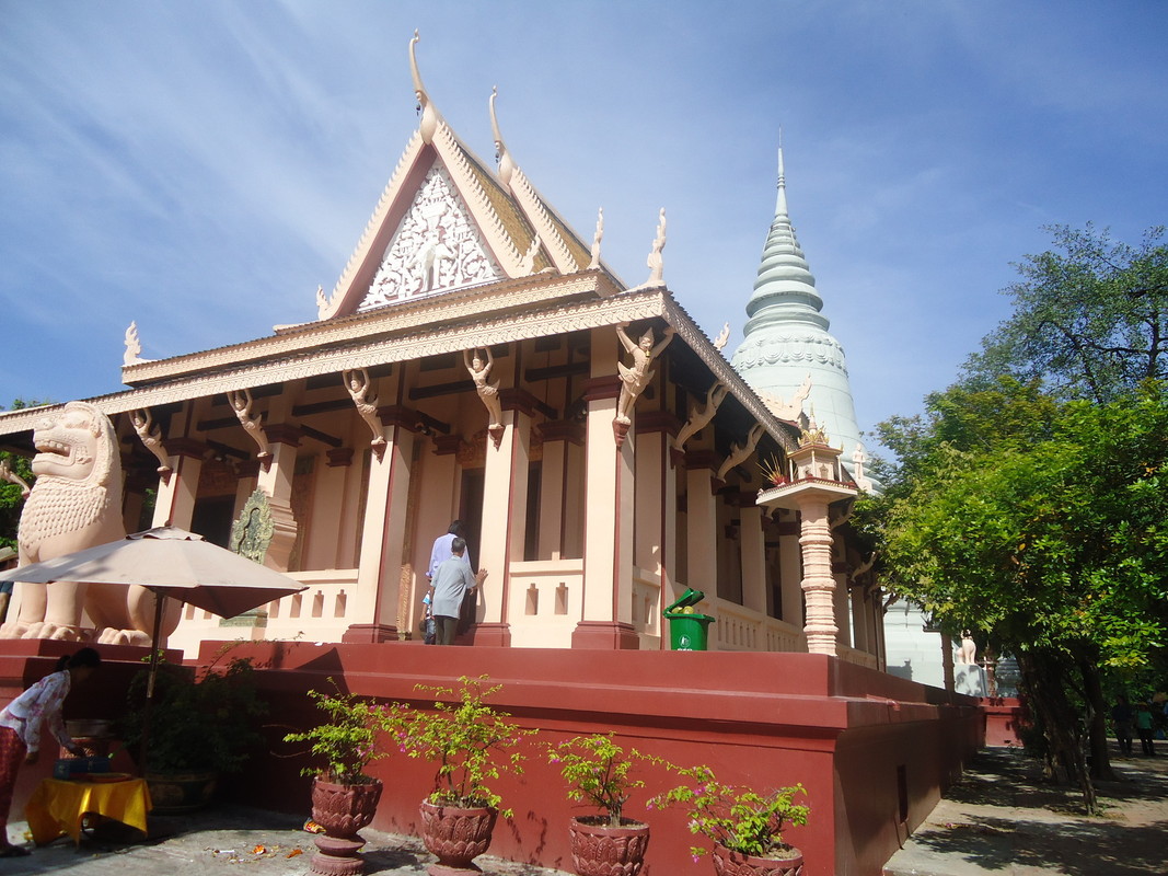 Wat Phnom liegt auf dem einzigen Hügel der Stadt. Der Legende nach wurde die erste Pagode an dieser Stelle im Jahr 1373 errichtet, um vier Buddha-Statuen zu beherbergen, die vom Wasser des Mekong an Land gespült und von einer Frau namens Frau Penh entdeckt wurden. Heutzutage kommen viele Menschen hierher, um für Glück und Erfolg zu beten, und kehren zurück, um Opfergaben wie Blumengirlanden zu überbringen, wenn ihre Gebete erhört wurden.