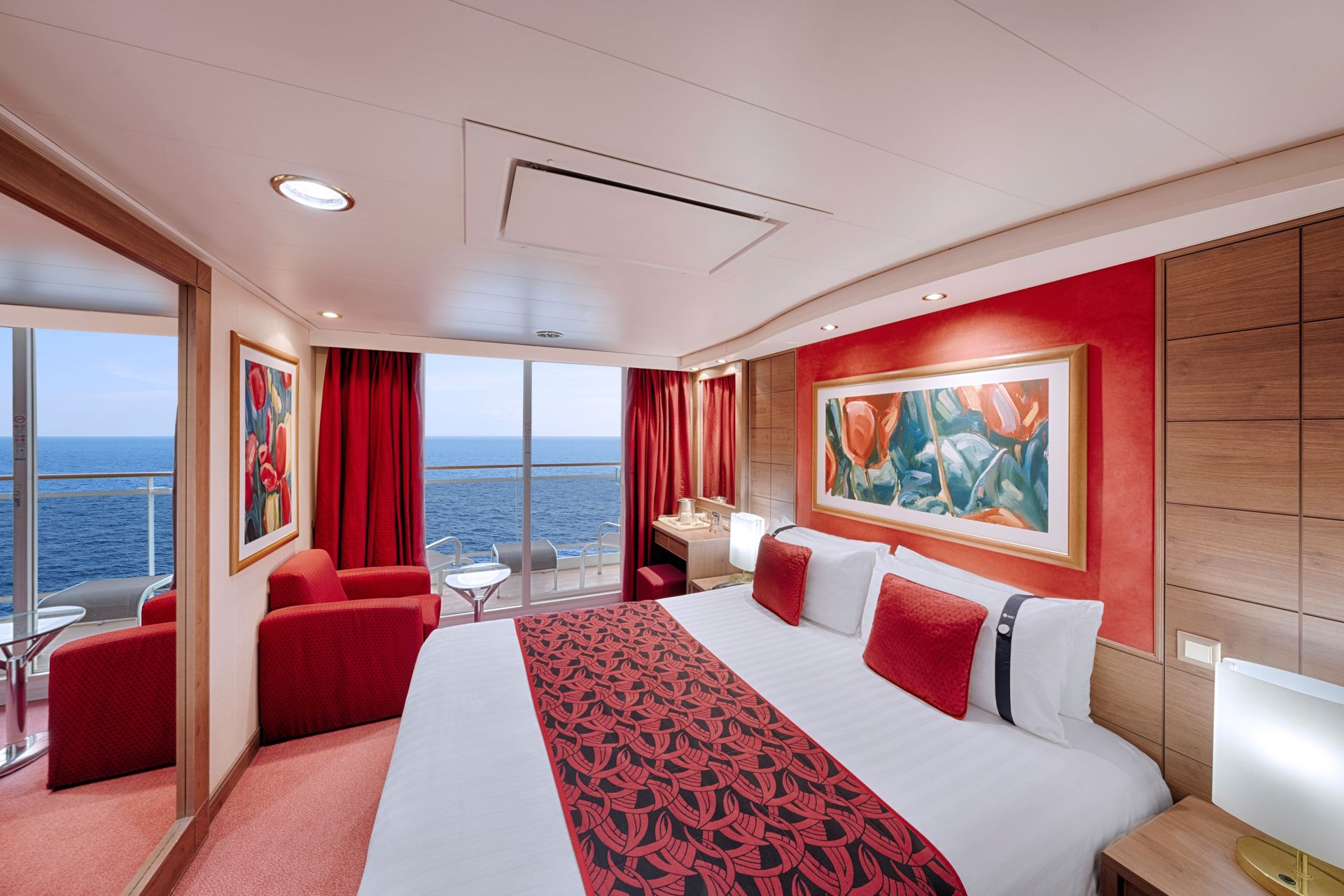 - Fenster mit Meerblick, bequemer Sessel, Doppelbett, das auf Anfrage in zwei Einzelbetten umgewandelt werden kann, Kabinen für Gäste mit eingeschränkter Mobilität oder sonstigen Beeinträchtigungen verfügen nur über Einzelbetten, Badezimmer mit Dusche, Föhn, interaktives TV-Gerät, Telefon, WLAN (gegen Gebühr), Minibar und Safe, Klimaanlage. Größe: ca. 16 m². (Größe, Aufteilung und Kabinenausstattung können von der Abbildung abweichen auch innerhalb derselben Kabinenkategorie).