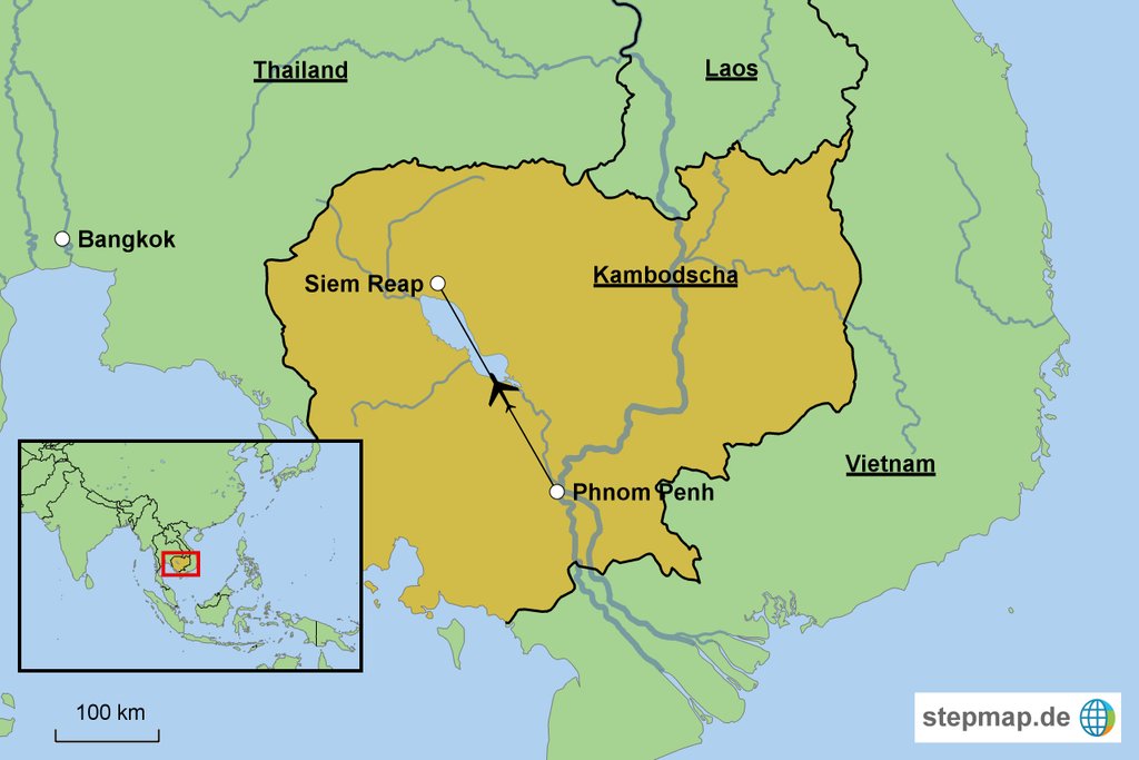 Stationen der Route: Phnom Penh Siem Reap Tempelanlagen von Angkor