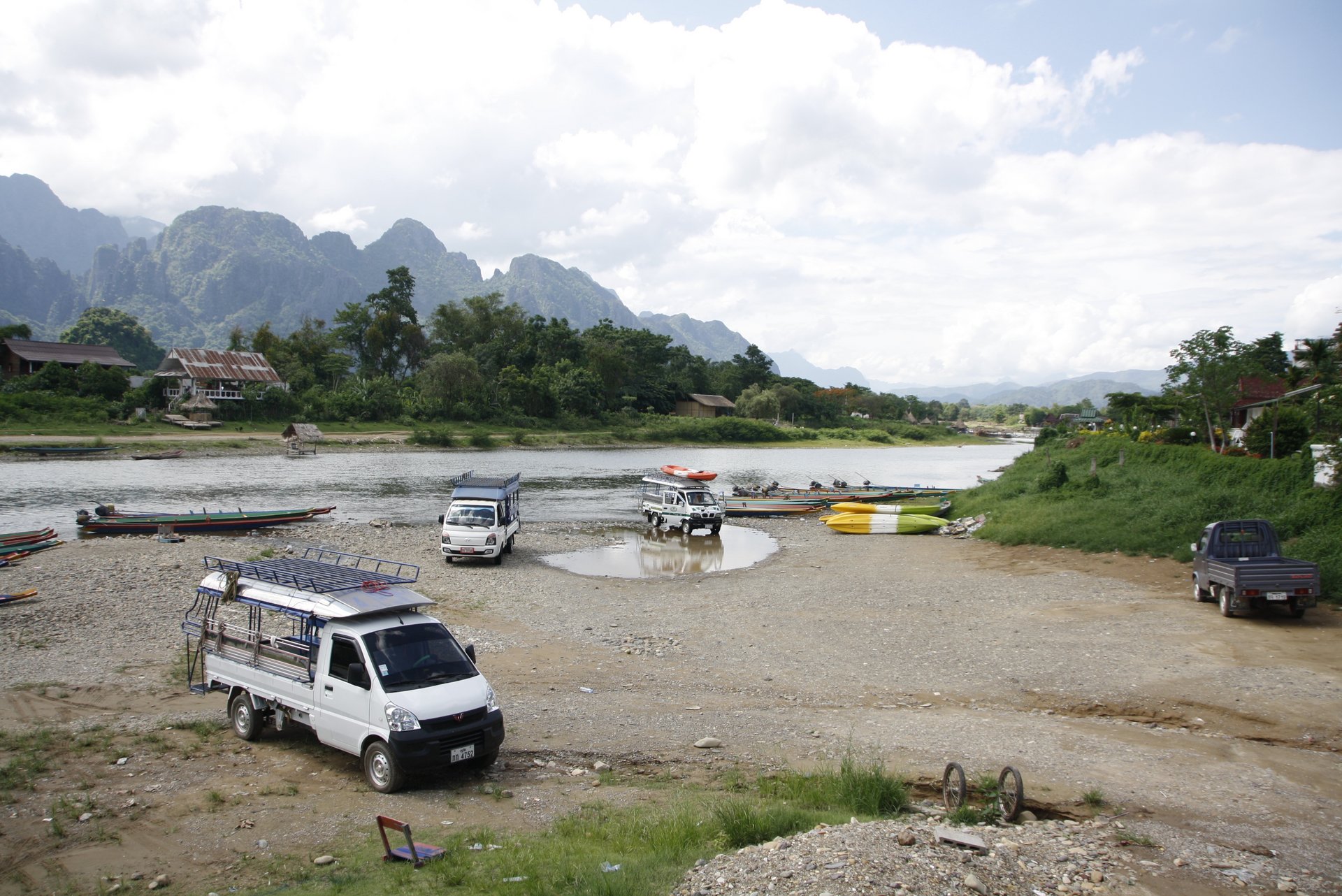 Fahrt von Vientiane nach Vang Vienglokales Dorf mit SalzgewinnungBootsfahrt auf dem Nam Ngum SeeÜbernachtung in Vang Vieng