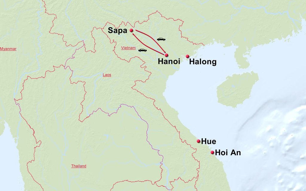 Stationen der Route: Hanoi Hoang Lien Nationalpark Sapa O Quy Ho-Pass Mu Cang Chai Hanoi