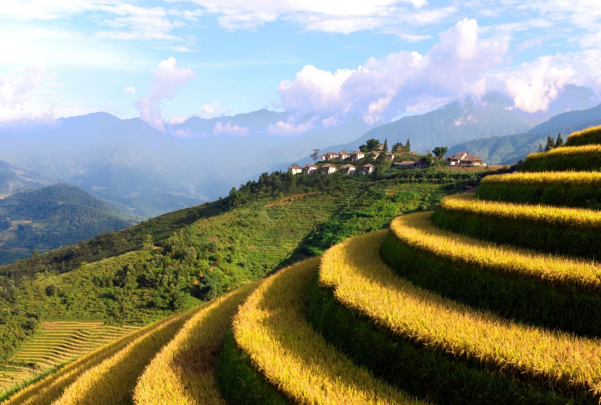 Frühmorgens verlassen Sie Hanoi im komfortablen Deluxe-Minivan und fahren in Richtung Hoang Lien Son-Bergkette. Gegen Mittag erreichen Sie die abgeschiedene Topas Ecolodge – Ihr exklusiver Ausgangspunkt für die ersten Luxusmomente im Bergparadies Nordvietnams. Nach dem Check-in und einer kurzen Pause freuen Sie sich auf ein wenig Bewegung! Sie unternehmen eine entspannte Radtour zum Dorf Lech der Roten Dao. Unterwegs genießen Sie dabei traumhafte Ausblicke, besuchen eine Familie und erfahren mehr über Stickereien und Traditionen dieser gastfreundlichen Gemeinschaft. Zurück in der Lodge lassen Sie den Tag in stilvollem Ambiente ausklingen.