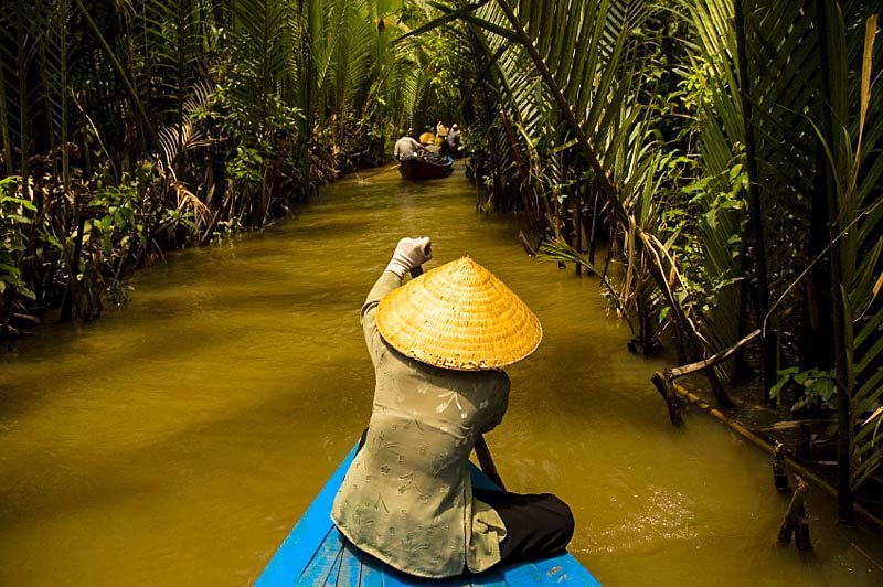 Nach dem Morgentee geht es mit kleinen Sampanbooten durch die schmalen Kanäle der Insel Tan Phong. Aber keine Angst Sie brauchen nicht selbst rudern! Die bunt gekleideten Ruderer, übrigens vorwiegend Damen, erwarten Sie schon. Es geht vorbei an unzähligen Wasserhyazinthen unter kleinen Brücken hindurch und immer mit dem Blick auf die Kokospalmen und Jackfruitbäume. Mit dem Fahrrad erkunden Sie dann die Gegend oder spazieren durch Dörfer entlang der kleinen Wasserstraßen. Die Mekong Eyes setzt ihre Reise durch das Labyrinth der Inselchen fort und Sie erholen sich beim köstlichen Mittagessen, das die Crew an Bord serviert. Auch am Nachmittag wartet ein Ausflug in ein Dorf oder ein Kochkurs an Bord auf Sie, bevor die Sonne wieder am Horizont versinkt.
