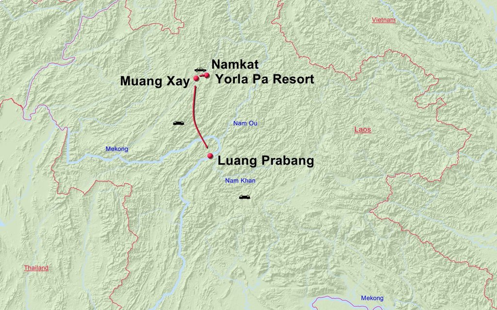 Stationen der Route: Luang Prabang Oudomxay Namkat Yorla Pa Luang Prabang
