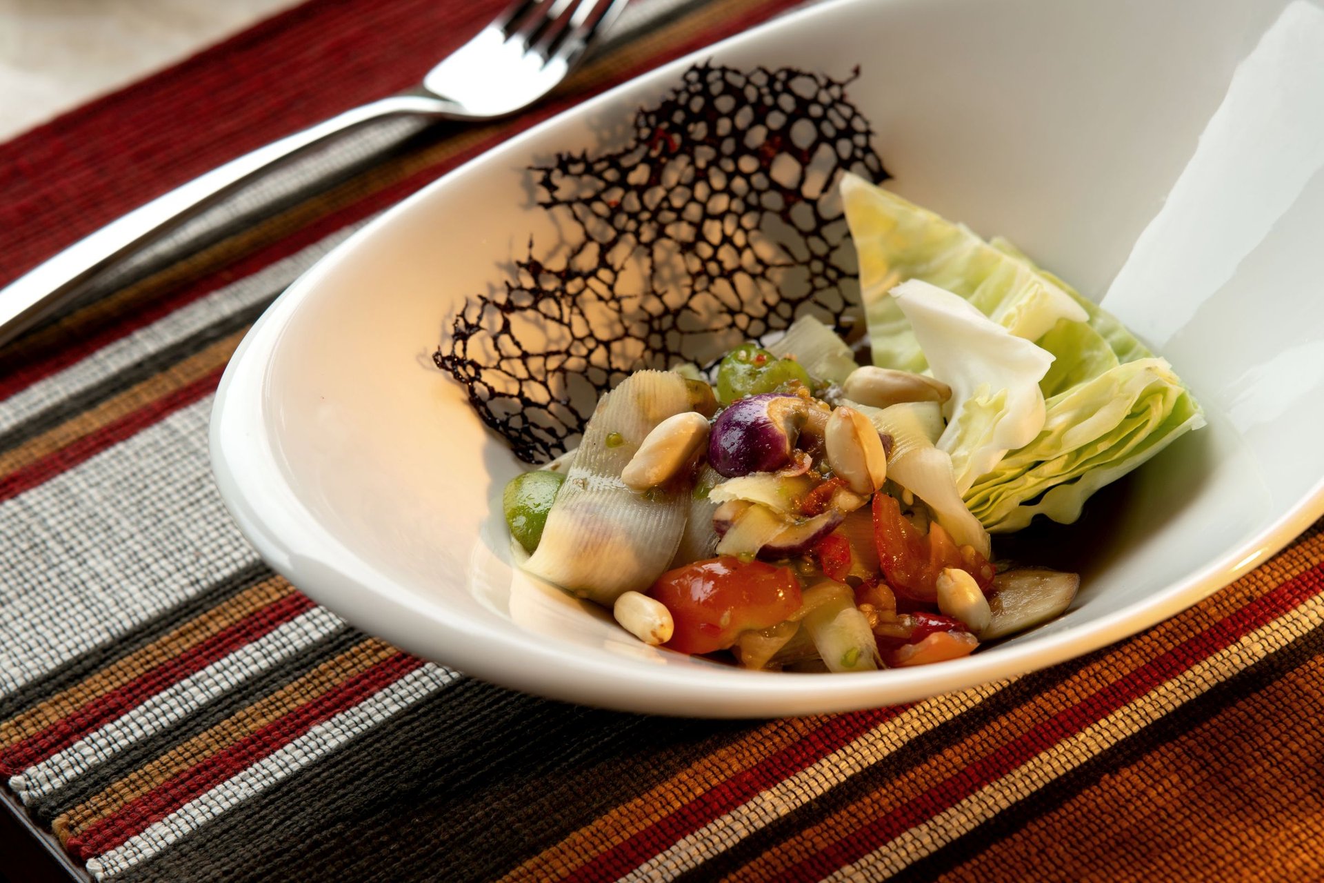 Zur Mittagszeit setzen wir unsere Reise fort und genießen vom gemütlichen Speisesaal aus einen atemberaubenden Blick auf die Szenerie am Ufer. Auf einer Sandbank weiter flussabwärts leben die einheimischen Volksgruppen Laoten, Khmu und Hmong im winzigen Dorf Kok Aek zusammen. Am Flussufer haben sie ein kleines Stück Land als Bio-Feld angelegt, das sorgfältig gepflegt und von Bambuszäunen umgeben ist. Hier bauen sie Bio-Gemüse, Obst und Kräuter an. Obwohl diese Parzellen zu bestimmten Jahreszeiten aufgrund von Überschwemmungen unbenutzbar sind, verspricht die nährstoffreiche Mekong-Bewässerung reiche jährliche Ernten. Wenn wir die Dorfbewohner kennenlernen, probieren Sie unbedingt eine lokale Spezialität - Kai Paen - es wird aus getrockneten Süßwasseralgen mit Sesam und Gemüse zubereitet!