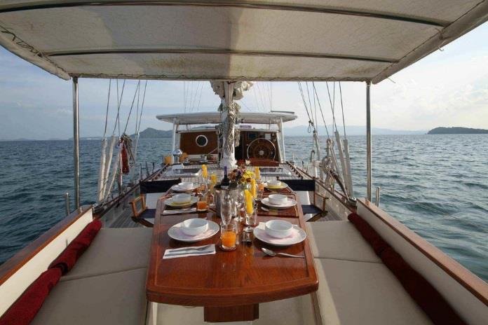 Ihre Reise findet entweder mit der SY Meta IV, einem luxuriösen 25m langen Zweimaster komplett aus thailändischem Teakholz, der SY Raja Laut einem Schiff in der Tradition der baltischen Handelssegler oder der SY Meltemi, einem Lagoon 500 Katamaran mit heller moderner Holzeinrichtung statt. Weitere Schiffe je nach Verfügbarkeit! Die Schiffe verfügen über 3-4 klimatisierte Gästekabinen und ein großzügiges Platzangebot an Bord.