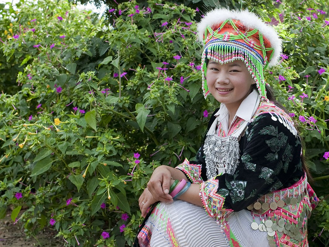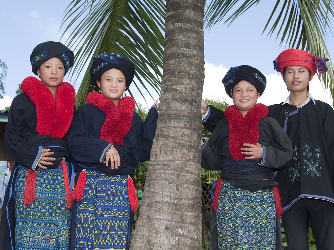 Auf dem Markt treffen die Angehörigen der umliegenden Bergstämme am frühen Morgen zusammen um ihre Waren zu verkaufen. In ihren farbenfrohen Stammestrachten haben Sie oftmals bereits lange Fußmärsche hinter sich bevor Sie in Muang Sing eintreffen. Anschließend geht es zu einem Ganztagesausflug mit leichten Wanderungen zu den umgebenden Dörfern der Bergstämme. Sie besuchen Dörfer der Ikhor, Lanten und Yao oder Mien. Neben der eindrucksvollen Landschaft und schönen Ausblicken erfahren Sie viel über die Lebensweise der Einwohner. Spannend sind die Trachten, an denen die einzelnen Stämme auch zu unterscheiden sind. Die Yao stammen ursprünglich aus der südchinesischen Provinz Yunnan und in ihren Dörfern leben Sie in großen Familienverbänden zusammen. Angehörige der Minderheit sind an den hohen kunstvoll gebundenen Turbanen und langen indigofarbenen Kleidern mit einem leuchtend roten Wollkragen erkennbar.