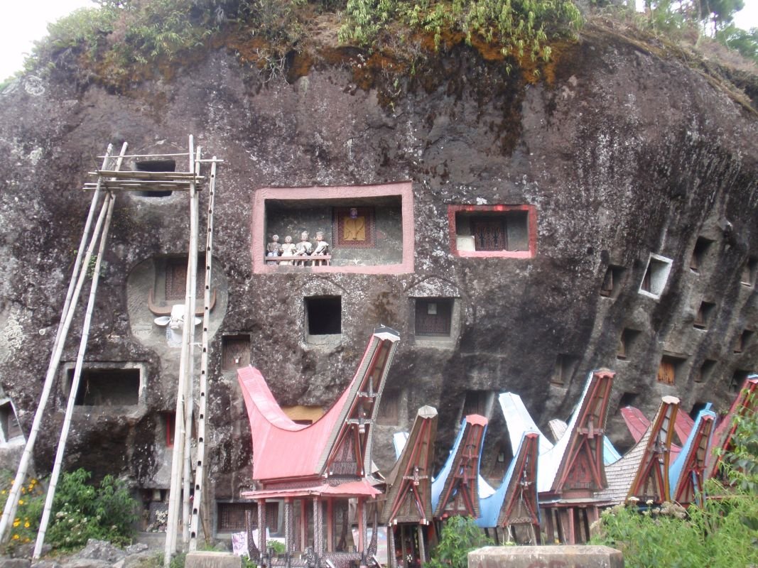 Nach einem frühen Frühstück Transfer zum Flughafen und Flug nach Toraja oder Palopo. Die Ankunft ist gegen 11.00 Uhr, ihr örtlicher Reiseleiter holt Sie ab und fährt mit Ihnen direkt los zur Erkundung des faszinierenden Torajalandes. Die Torajas leben immer noch in traditionellen Häusern, deren Dachform Booten nachempfunden ist. Sie verehren Wasserbüffel, denn nach ihrem Glauben transportieren diese Tiere die Seelen der Verstorbenen zu den Ahnen. Das Volk der Toraja veranstaltet grandiose, mehrtägige Beerdigungszeremonien und die einzigartigen Grabsysteme an den Felsen sind berühmt. Sie besuchen die Felswände von Lemo, wo die Tau-Taus, den Toten gleichende Puppen, die Gräber bewachen. Staunen Sie über die Grabhöhlen von Londa und besuchen Sie außerdem Kete Kesu, wo sich zahlreiche schön verzierte Tongkonan Häuser befinden. Übernachtung und Abendessen im Hotel in Rantepao.
