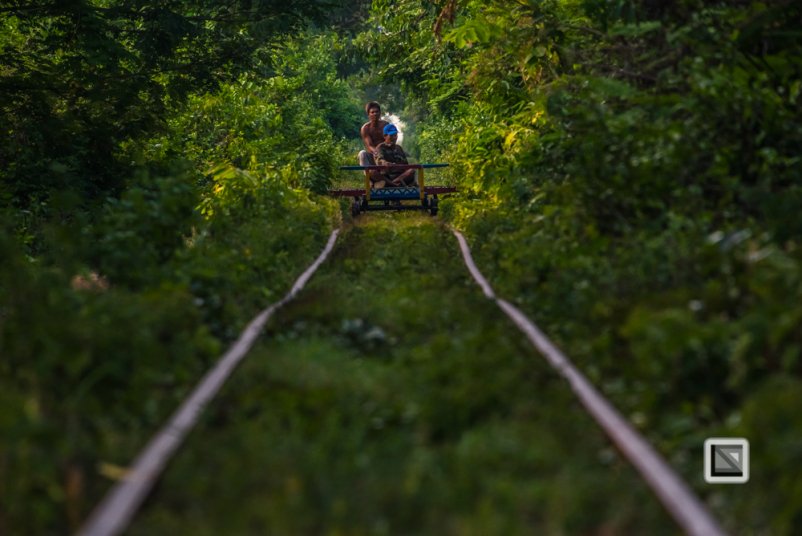 Am Nachmittag fahren wir dann weiter zur Bamboo Train Station. Die Dorfbewohner haben die ursprünglich vom Krieg zerstörten Schienen repariert und den Bambuszug als Transportmittel erfunden. Es ist grundsätzlich immer noch einfach eine Plattform auf vier Rädern, bestückt mit einem kleinen Motor (früher von einem Boot, Moped o.ä.). Damit geht es ein wenig abenteuerlich etwa 8 km durch wunderschöne Landschaften und Reisfelder zur nächsten Station. Anschließend reisen wir weiter zum Phnom Sampeau. Der Kalksteinfelsen bietet beeindruckende Ausblicke über Ackerland, Reisfelder, Palmen und Pfahldörfer. Doch die Region hat auch eine traurige Vergangenheit, denn hier befinden sich Höhlen, in denen die Roten Khmer Gefangene hinrichteten. Wir bleiben bis zum Einbruch der Dunkelheit, um einen der faszinierendsten Anblicke der Natur zu erhaschen: Tausende Fledermäuse strömen aus dem Höhleneingang in die Dämmerungsluft. Sie fliegen einer nach dem anderen aus und erzeugen Muster am Himmel. Ein faszinierender Anblick!