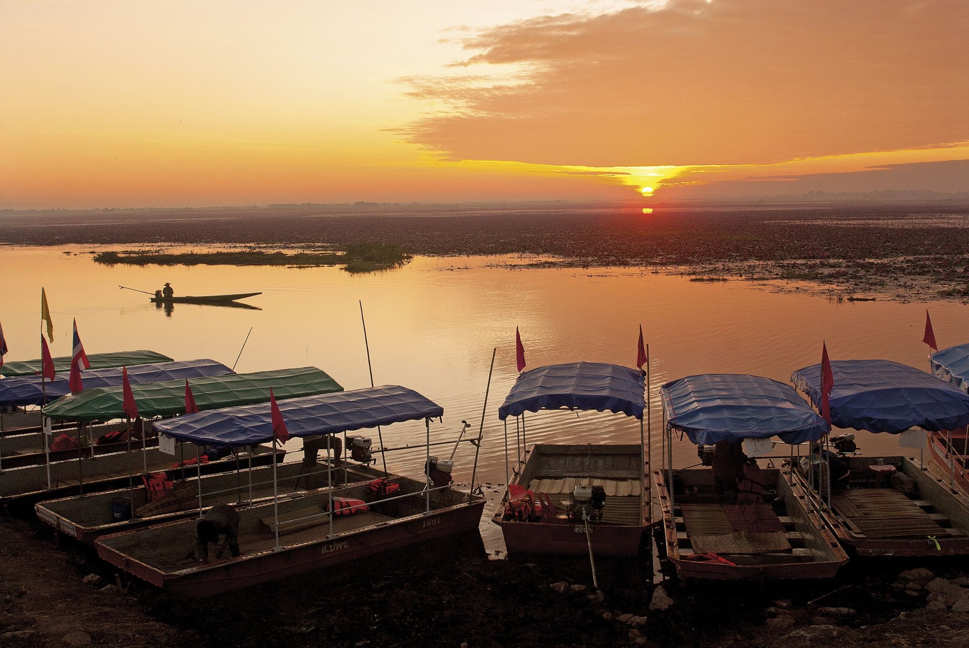 Mit einer Fahrt zum zauberhaften Nong Han Kumphawapi-Lake, der als "See der roten Seerosen" bekannt ist, starten wir in den Tag. Ein Bootsausflug führt uns durch dieses malerische Naturparadies, das von November bis März von Millionen roter Blüten überzogen ist und beeindruckende Fotomotive bietet. Ein unvergesslicher Anblick, wenn das Wasser wie ein Teppich in lebendigen Farben erstrahlt! Von den frühen Morgenstunden bis Mittag öffnen sich die Seerosen, und auch außerhalb der Blühsaison bietet der See eine friedliche Naturlandschaft und eine reiche Vogelwelt.