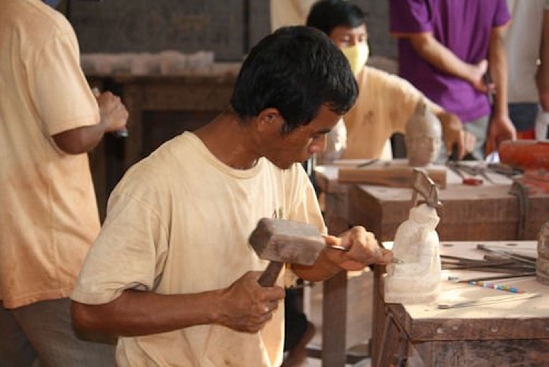 Sie beginnen den Tag mit einem Besuch bei "Les Artisans d´Angkor - Chantiers Ecoles". In diesem wunderbaren sozialen Projekt werden junge Künstler in traditionellem kambodschanischem Kunsthandwerk ausgebildet. Sie schnitzen, stellen Skulpturen her, produzieren Lackwaren und Weben Seidenstoffe, die auch verarbeitet werden. Immer wieder werden Künstler ausgewählt um bei den Restaurierungsarbeiten in Angkor tätig zu sein. Das Unternehmen entwickelte sich von einem Ausbildungszentrum mittlerweile zu einem der wichtigsten Arbeitgeber der Region und fördert faire nachhaltige Entwicklung, um die ländlichen Gemeinden zu unterstützen.