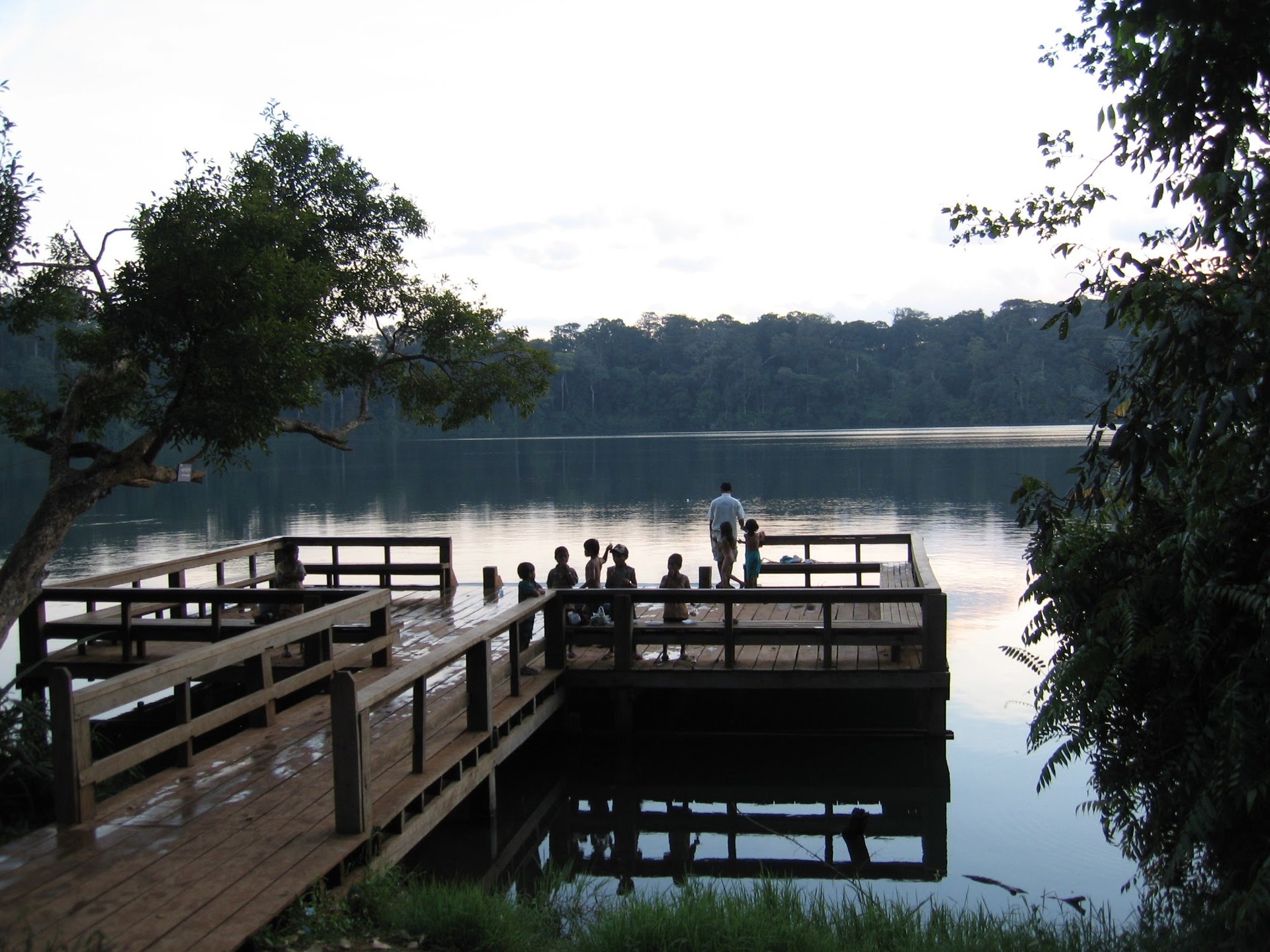 Gegen 20 Uhr geht es noch los zu einer einstündigen Dschungelwanderung mit Fackeln. Die Baumkronen beherbergen viele nachtaktive Tiere, wie den Zwerg-Loris (ein kleiner Baumprimat) und die Zibetkatze (eine kleine Dschungelkatze). In Bodennähe ist es viel schwieriger, die Tiere zu entdecken. Doch die Augen spiegeln das Licht der Fackeln und verraten so die Position der Tiere.