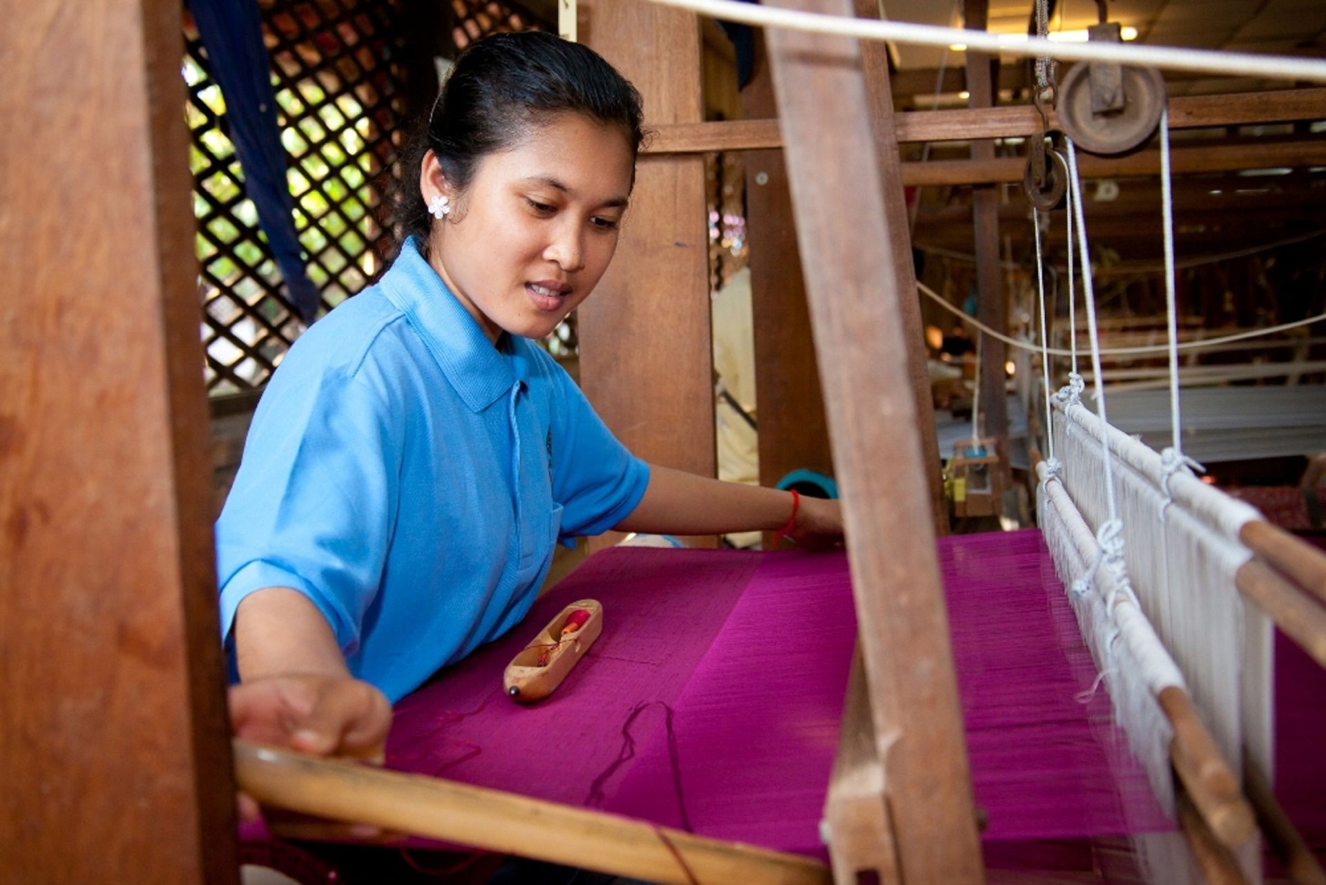 Hier besuchen Sie das Carol Cassidy Silk Weaving Center*, in dem eine Gemeinschaft von durch Landminen Verletzter durch traditionelles Weben ein nachhaltiges Einkommen erzielt. Die Seide kommt aus China und Vietnam, während die fertigen Produkte hauptsächlich in die USA und nach Singapur exportiert werden.