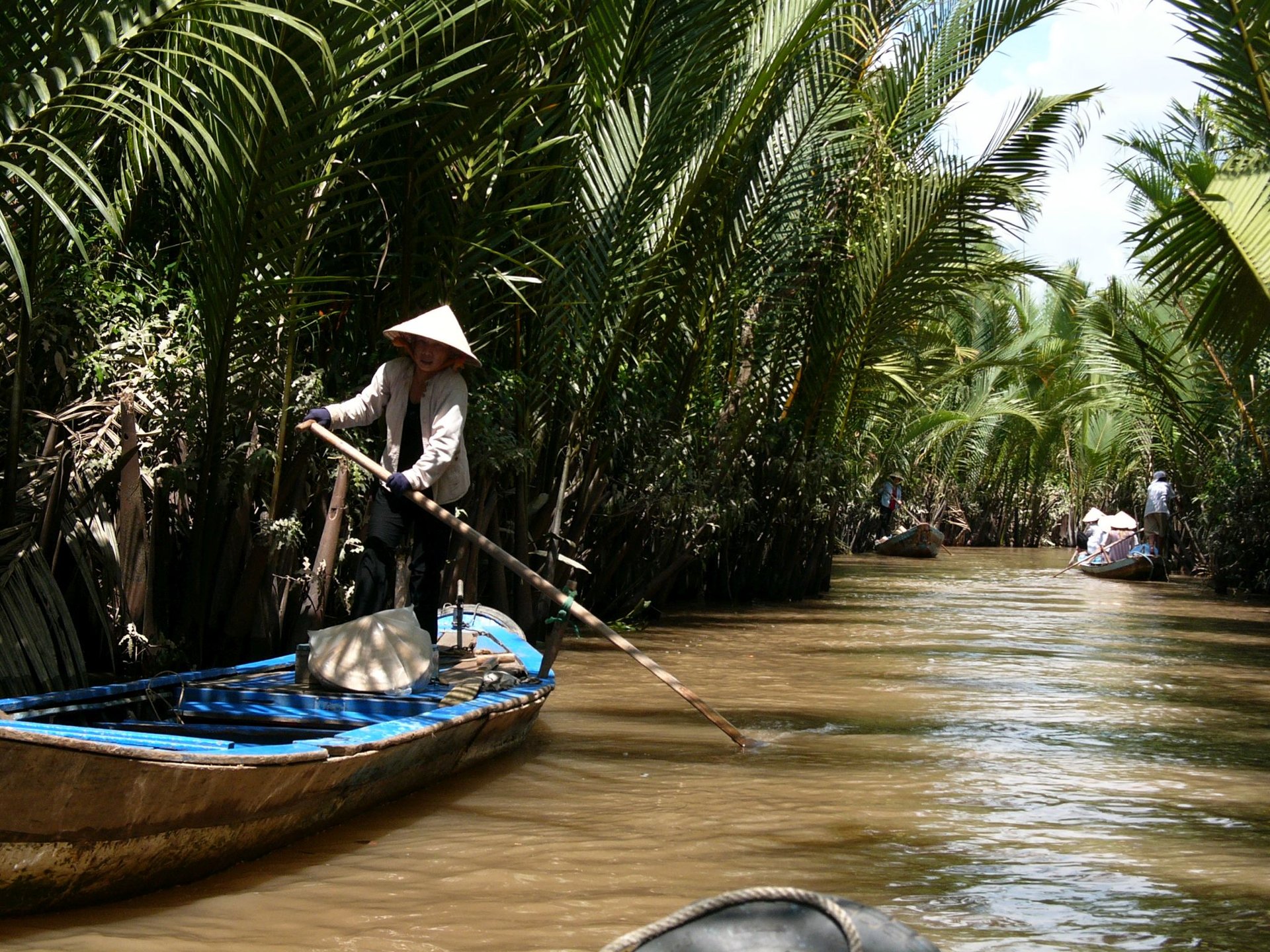 Das Mekong-Delta, bekannt als die "Reiskammer" Vietnams, erwartet uns heute mit üppigen Reisfeldern und verwinkelten Wasserwegen.