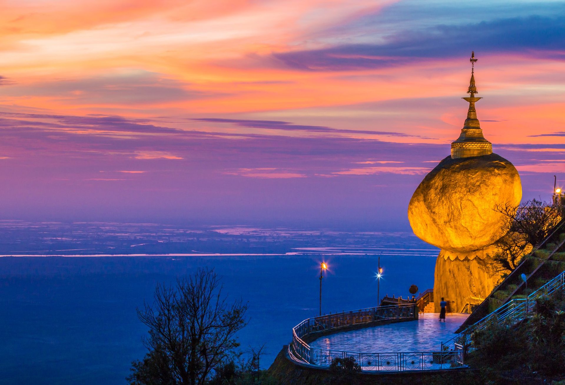 Die Fahrt führt anschließend weiter nach Kin Pun, wo Sie das Basislager des Golden Rock erreichen. Hier heißt es umsteigen, denn es dürfen nur spezielle Lastwagen mit Sitzbänken auf den Berg fahren. Ab dem oberen Lager gilt es dann den Weg zu Fuß oder mit der Seilbahn fortzusetzen. Oben angekommen nimmt Sie die Atmosphäre beim Felsen gefangen. Bewundern Sie einen beeindruckenden Sonnenuntergang an diesem wichtigen Wallfahrtsort!